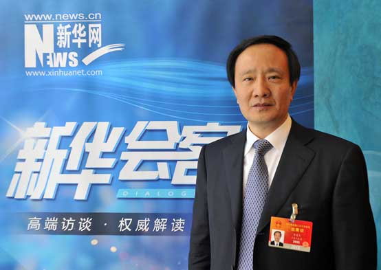 Li Jianhua, a NPC deputy and CPC Ningxia Hui Autonomous Region committee secretary, gives an interview to Xinhuanet on March 8, 2015. (Photo source: Xinhuanet photo) |