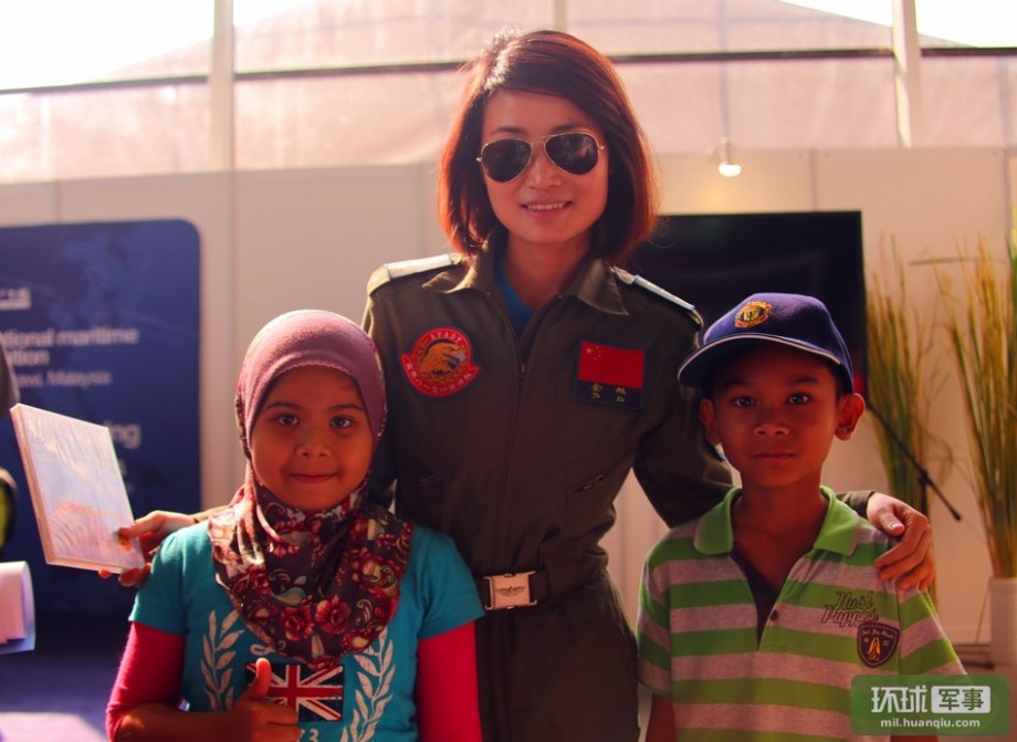 The spectators pose for photo with Chinese fighter pilot in Malaysia. (Global Times/Li Xuan)