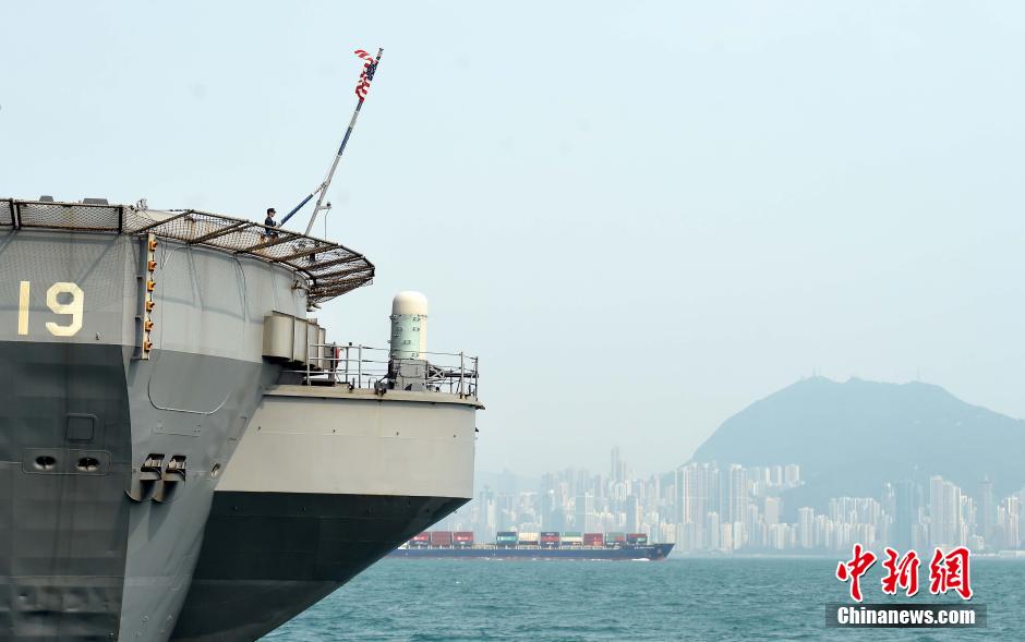 USS Blue Ridge, the command ship of the U.S. Seventh Fleet which anchored in the sea area of the Tsing Ma Bridge in Hong Kong, invites media on board for visit on March 23, 2015. After a six-month maintenance period, the “Blue Ridge” arrived in Hong Kong on March 20. USS Blue Ridge (LCC-19) started service in 1970, and is one of the strongest US Navy command ships. It can cover a battle area up to 124 million square kilometers, 10 times the area of the United States. (CNS/Zhang YU)