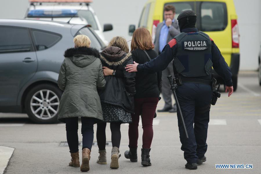 Family members of passengers in the crashed plane of Germanwings leave Barcelona's El Prat airport in Barcelona, Spain, on March 24, 2015. An Airbus A320 of the German low-cost airline Germanwings with 150 people on board crashed on Tuesday in southern France, French authorities confirmed. (Xinhua/Pau Barrena)