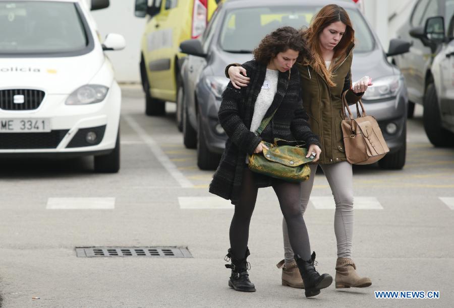 Family members of passengers in the crashed plane of Germanwings leave Barcelona's El Prat airport in Barcelona, Spain, on March 24, 2015. An Airbus A320 of the German low-cost airline Germanwings with 150 people on board crashed on Tuesday in southern France, French authorities confirmed. (Xinhua/Pau Barrena) |