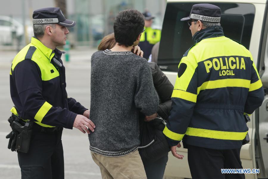 Family members of passengers in the crashed plane of Germanwings hug each other at Barcelona's El Prat airport in Barcelona, Spain, on March 24, 2015. An Airbus A320 of the German low-cost airline Germanwings with 150 people on board crashed on Tuesday in southern France, French authorities confirmed. (Xinhua/Pau Barrena) |