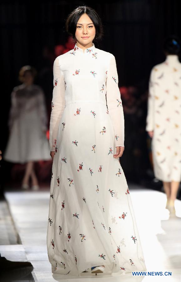 Models present creations of Eve de Cina during the China Fashion Week A/W 2015/2016 in Beijing, capital of China, March 24, 2015. (Xinhua/Li Mingfang)