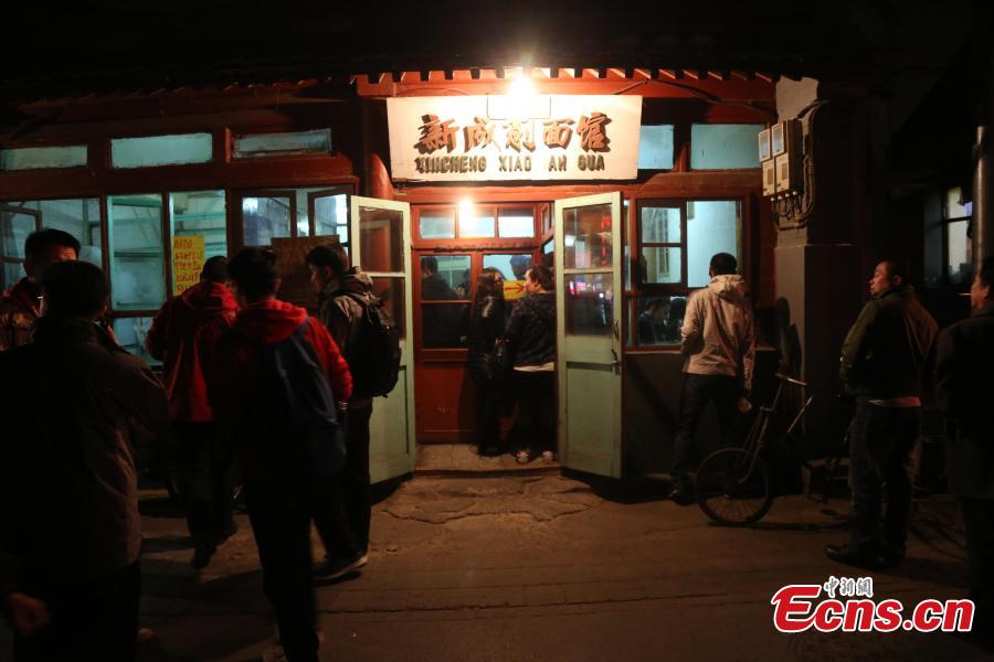 Customers queue to buy noodles in the time-honored Xincheng Noodle House in Qianmen, downtown Beijing, March 24, 2015. The 60-year-old restaurant will close on March 25 due to rocketing rents. It started as a private noodle house and was then nationalized in 1956. Later, it was operated by private owners, featuring the same decor, products and even staff for decades, and has become a mainstay in Qianmen where many historic buildings have been razed in recent years as part of the street's modernization. (Photo: China News Service/Liu Xianguo)