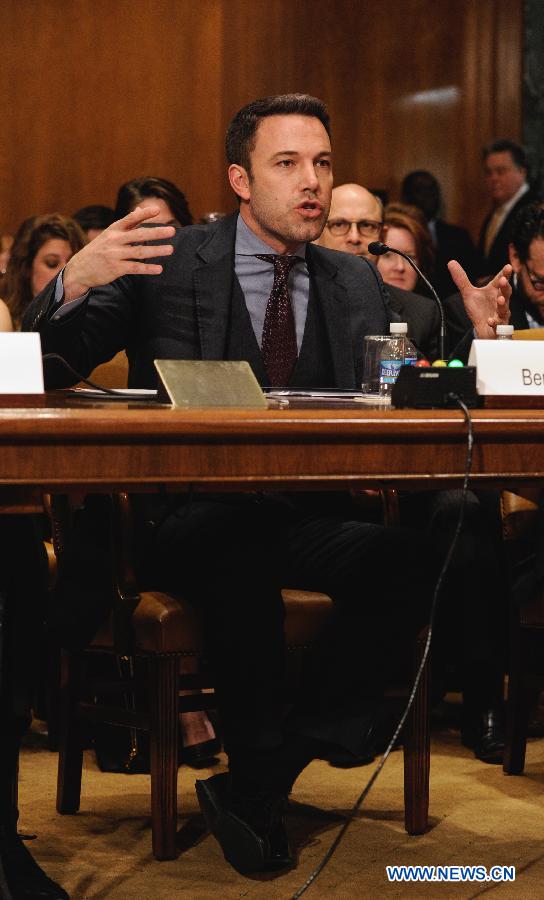 . Actor, filmmaker and founder of Eastern Congo Initiative Ben Affleck testifies before state, foreign operations subcommittee of senate appropriations committee in the hearing on Diplomacy, Development, and National Security, on Capitol Hill in Washington D.C., capital of the United States, March 26, 2015.(Xinhua/Bao Dandan) |