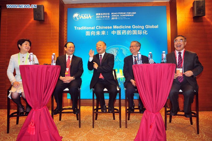 Delegates attend the breakfast meeting with the theme of "Traditional Chinese Medicine Going Global" during the 2015 Boao Forum for Asia (BFA) in Boao, south China's Hainan Province, March 27, 2015. (Xinhua/Yang Guanyu)