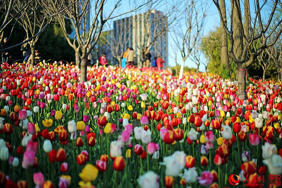 Tulip Expo 2015 is held in Lingshi Park in Shanghai from March 15 to 22. Beautiful flowers and warm spring weather attracted a lot of visitors. (People's Daily Online/Wang Chu)
