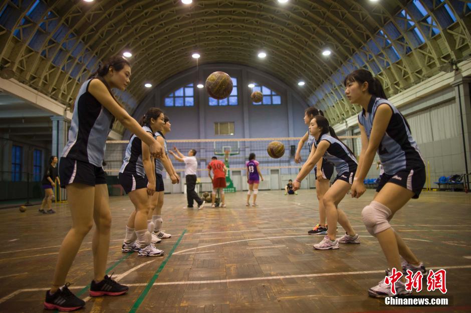 Young athletes of the women volleyball team of Shanxi University choose to spend their time in training in gymnasium instead of shopping and playing. Post-95s Lu Yujie is the team leader and she spends four hours in training with her teammates from Monday to Thursday every week. In August 2014, they won the championship of the second National College Volleyball Competition. (Chinanews.com/Zhang Yun)