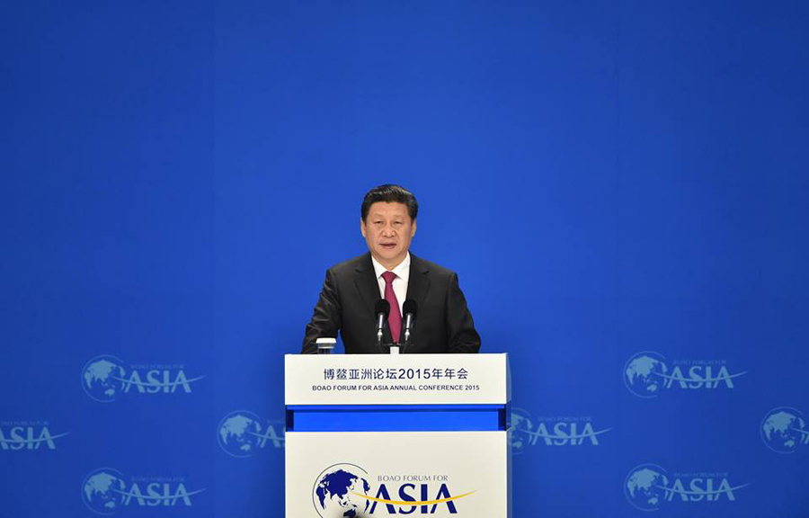 Chinese President Xi Jinping gives a keynote speech during the opening ceremony of the Boao Forum for Asia (BFA) Annual Conference 2015 in Boao, south China's Hainan Province, March 28, 2015. |