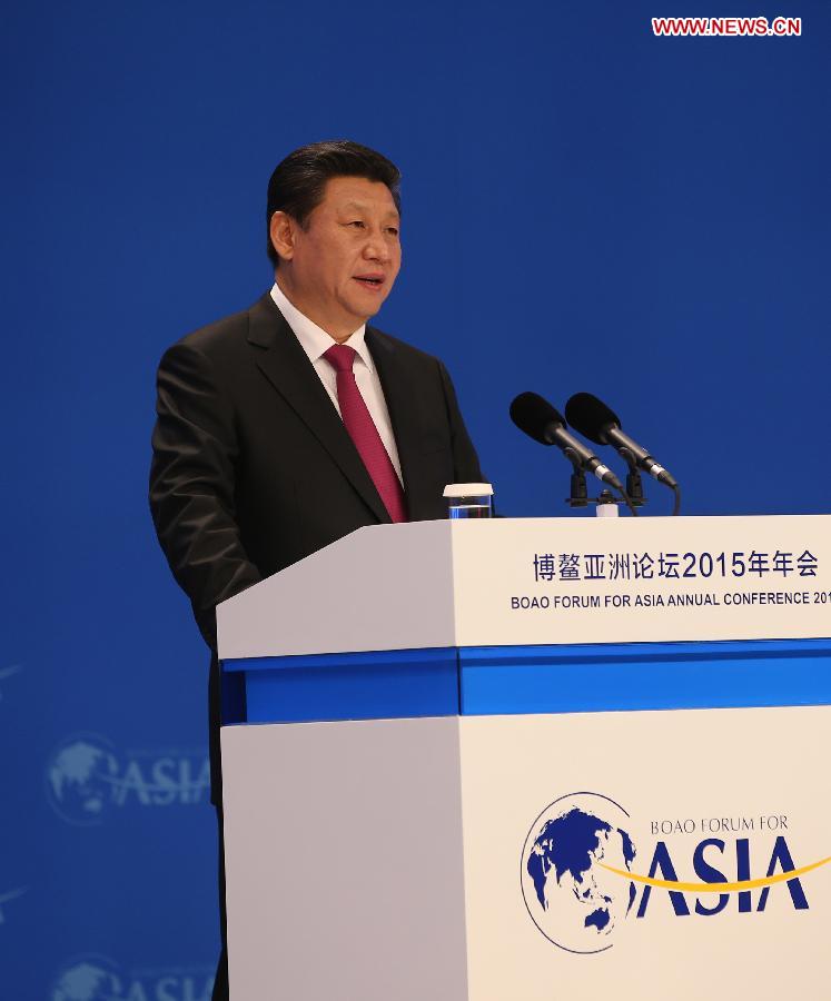 Chinese President Xi Jinpingdelivers a keynote speech at the opening plenary of the 2015 annual conference of the Boao Forum for Asia (BFA) in Boao, south China's Hainan Province, March 28, 2015. (Xinhua/Lan Hongguang) |