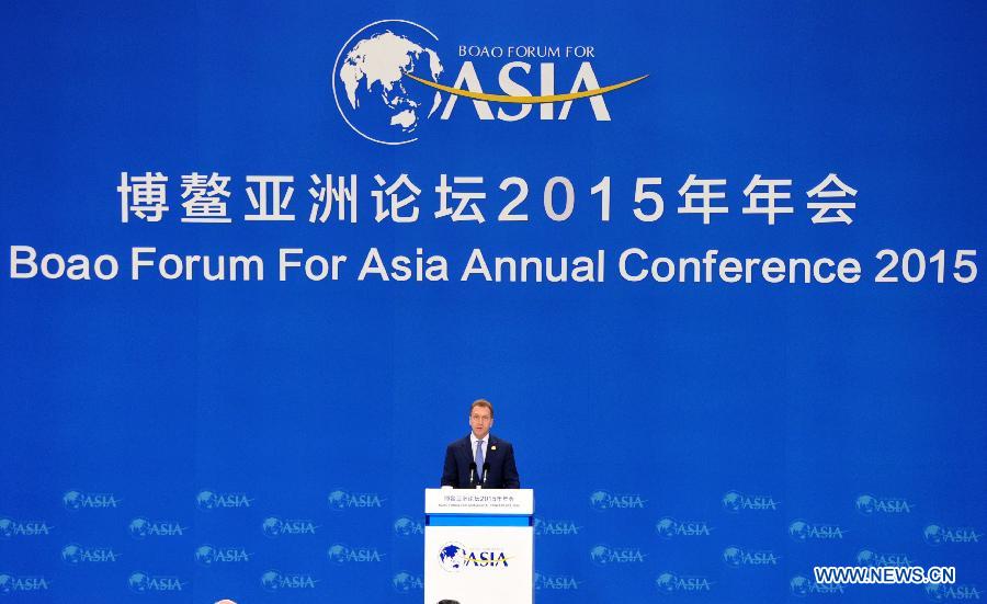 Russian First Deputy Prime Minister Igor Shuvalov addresses the opening ceremony of the 2015 annual conference of the Boao Forum for Asia (BFA) in Boao, south China's Hainan Province, March 28, 2015. Shuvalov said Saturday Russia decided to join the Asian Infrastructure Investment Bank (AIIB). (Xinhua/Zhao Yingquan) |