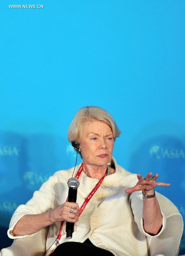 Gail D. Fosler, President of the GailFoster Group, speaks at a sub-forum with the theme of "Shadow Banking: The Good and Bad" during the 2015 Boao Forum for Asia (BFA) in Boao, south China's Hainan Province, March 28, 2015. (Xinhua/Yang Guanyu)