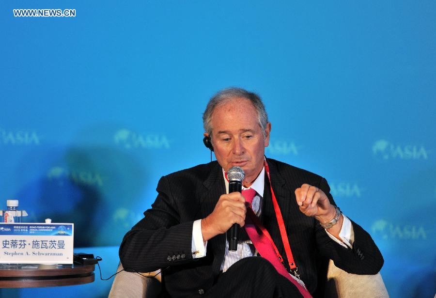 Chairman and CEO of Blackstone Stephen A.Schwarzman speaks at the sub-forum with the theme of "The Next Financial Crisis" during the 2015 Boao Forum for Asia (BFA) in Boao, south China's Hainan Province, March 28, 2015. (Xinhua/Yang Guanyu)