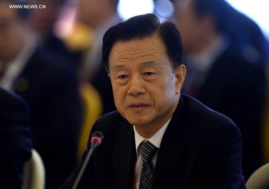 Founder and Chairman of Shimao Group Hui Wing Mau speaks at an overseas Chinese business roundtable during the 2015 Boao Forum for Asia (BFA) in Boao, south China's Hainan Province, March 29, 2015. (Xinhua/Guo Cheng)