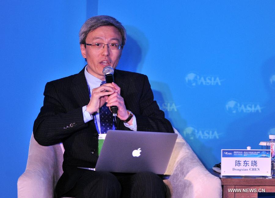 Chen Dongxiao, president of Shanghai Institute for International Studies, presides over the sub-forum with the theme of "Transcending the Cold-War Mentality: A Fresh Outlook on Security Architecture in the Asia Pacific" during the 2015 Boao Forum for Asia (BFA) in Boao, south China's Hainan Province, March 29, 2015. (Xinhua/Yang Guanyu)