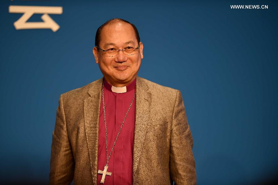 Paul Kwong, Archbishop of the Hong Kong Sheng Kung Hui (Anglican), speaks during a TV debate session themed on "Peace & Harmony: the Enlightenment of Religions" of the 2015 Boao Forum for Asia (BFA) in Boao, south China's Hainan Province, March 29, 2015. (Xinhua/Guo Cheng) |