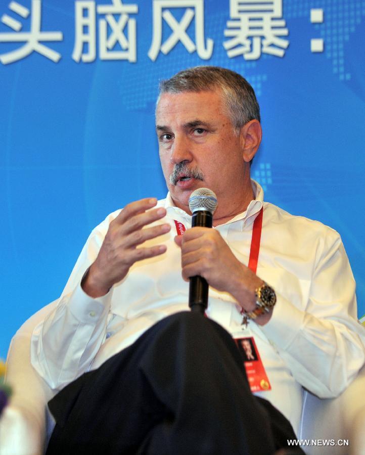 Thomas Friedman, columnist of New York Times and author of "The World is Flat", speaks at the luncheon with the theme of "Brainstorming: Rethinking Global Governance" during the 2015 Boao Forum for Asia (BFA) in Boao, south China's Hainan Province, March 29, 2015. (Xinhua/Yang Guanyu)