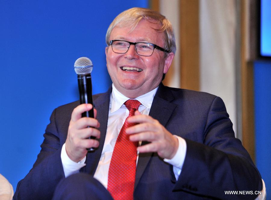 Former Australian Prime Minister Kevin Rudd speaks at the luncheon with the theme of "Brainstorming: Rethinking Global Governance" during the 2015 Boao Forum for Asia (BFA) in Boao, south China's Hainan Province, March 29, 2015. (Xinhua/Yang Guanyu) |
