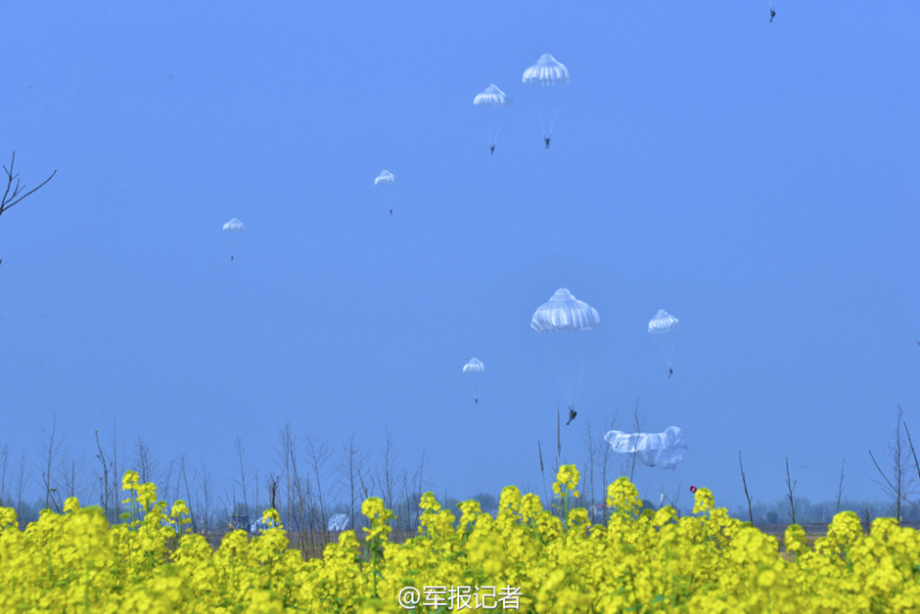 On March 21, 2015, an airborne troop conducted parachuting training. After four hours of flying, hundreds of paratroopers landed in a valley in northern Hubei province in central China.(81.cn/Photo)