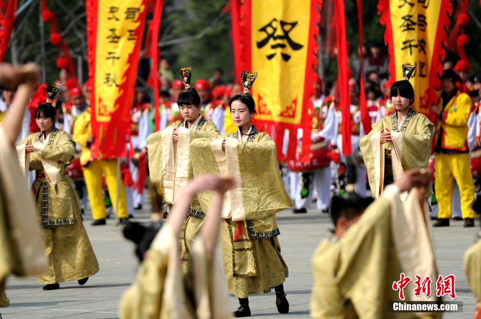 Worship ceremony for Sima Qian, a historian of the Han dynasty, is held at his hometown Hancheng, , northwest China's Shaanxi province on March 29, 2015. Descendants of Sima, experts, scholars and tourists attended the ceremony. (CNS/Zhang Yuan)