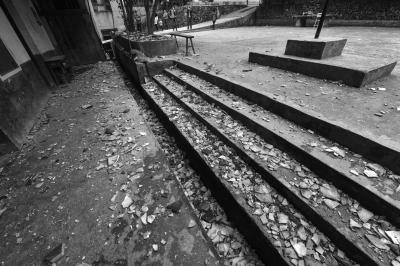 Debris on the ground after a 5.5-magnitude earthquake struck Xinliu Primary School, close to Nanjia Township, southwest China's Guizhou Province on Monday morning. (Photo/Xinhua) |