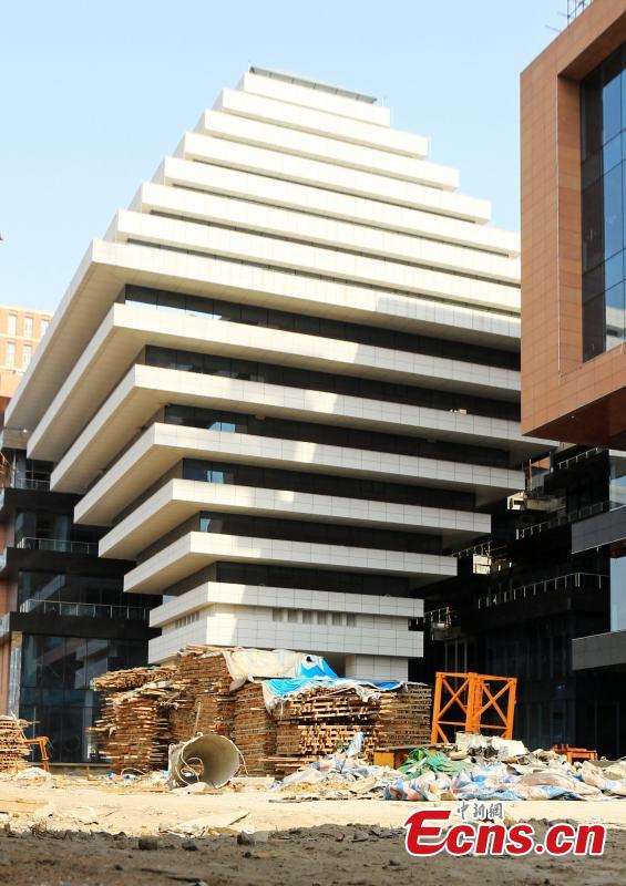 A spinning top-shaped building is under construction in Zhengzhou, Central China's Henan province, March 29, 2015. (Photo: China News Service/Wang Zirui)