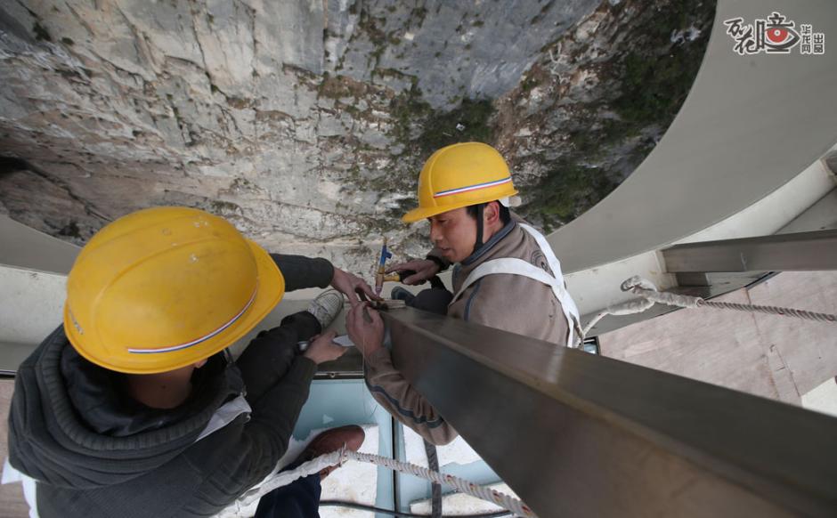 The world's longest glass cantilever bridge in Yunyang county, Chongqing, will be opened to tourists on May 1. The "Cloud bridge" is built on top of the cliffs 1,123 meters above sea level. The bridge is about 3.4 meters wide and 50 meters long, with a shape of flower. When one stands on it, he will feel totally "suspended" in the air without any line in sight. (Photo/CNS)