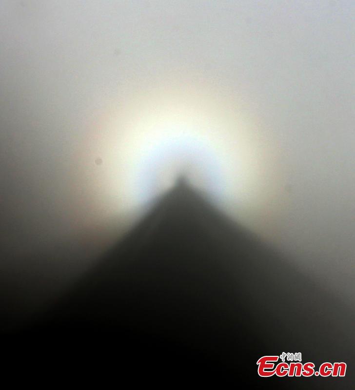 'Buddha's light,'a unique light phenomenon is seen on a peak of Mount Huangshan scenic spot in Huangshan city, East China's Anhui province on March 31, 2015. The special light effect only appears a couple of times per month on the mountain. (Photo:China News Service/ Shi Guangde) |