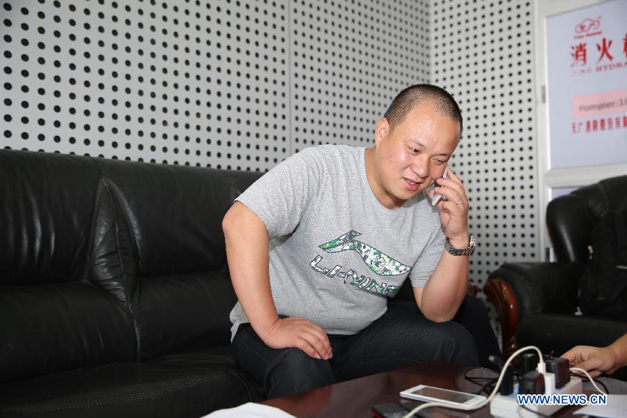 A Chinese evacuee makes free phone calls with his family with at the temporary rest center in Hassan Gouled in Djibouti, March 31, 2015. More than 500 Chinese evacuees from conflict-ridden Yemen have arrived at the Djibouti port as the situation continues to deteriorate in Yemen. (Xinhua/Pan Siwei)