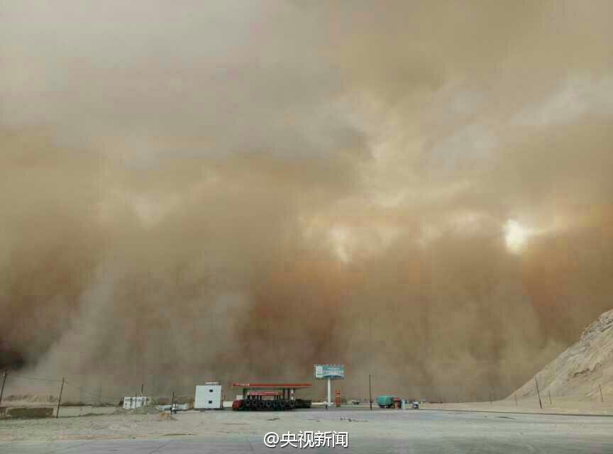 A sandstorm hits Golmud, northwest China's Qinghai province on March 31, 2015. (Photo source/Macroblog of CCTV))