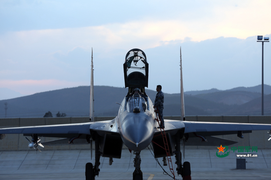 In this photo taken on March 29, 2015, J-11 fighter jets carrying missiles join an actual combat drill conducted by a division under the Air Force of the Chengdu Military Area Command (MAC) of the Chinese People's Liberation Army (PLA). (81.cn/Photo)