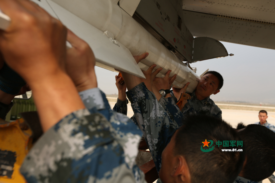 In this photo taken on March 29, 2015, J-11 fighter jets carrying missiles join an actual combat drill conducted by a division under the Air Force of the Chengdu Military Area Command (MAC) of the Chinese People's Liberation Army (PLA). (81.cn/Photo) |