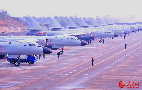Photo released by China's Ministry of Defense (MOD) shows a Chinese Air Force division equipped with a new type of bomber aircraft preparing for training. (Photo/MOD) |