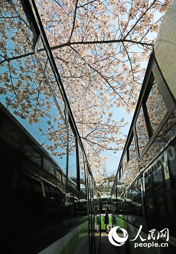Recently, photos of the Puxi public transit hub in Shanghai have gone viral on line for its blooming cherry blossoms. Netizens regard it as "the most beautiful bus station" in Shanghai. Dozens of cherry trees there have reached peak bloom, attracting citizens to enjoy the natural beauty and record the amazing scenery. (People.cn/Wang Chu) |