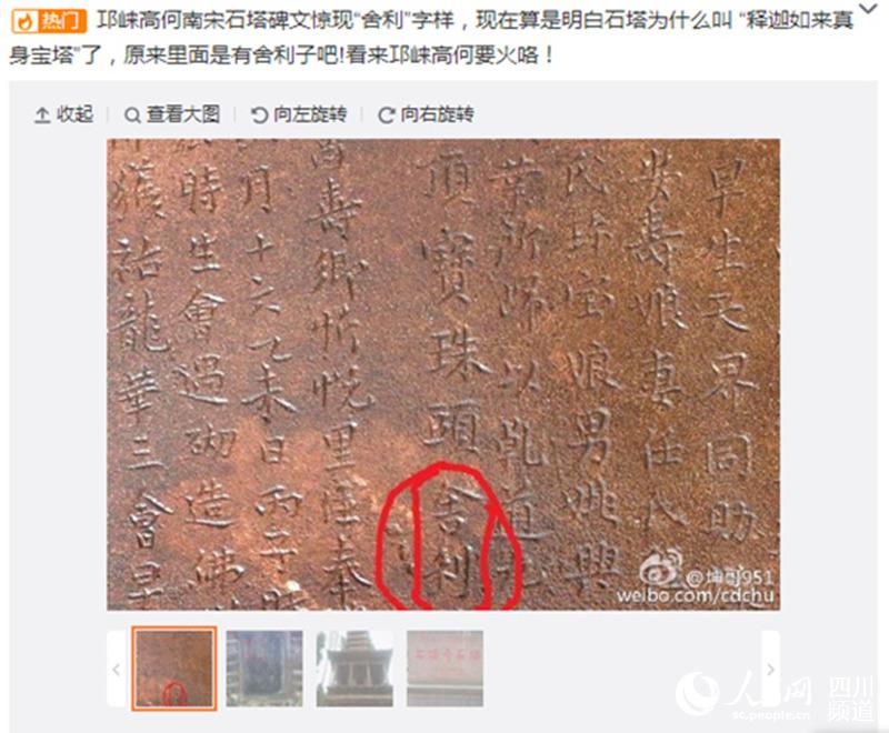 Chengdu, March 30, 2015 (The People's Daily Online) –According to a story recently published by Weibo user Kunge 951, the sarira (Buddhist relics) has been discovered in Qionglai city, 75 kilometers southwest of Chengdu. This discovery has attracted the attention of many netizens.