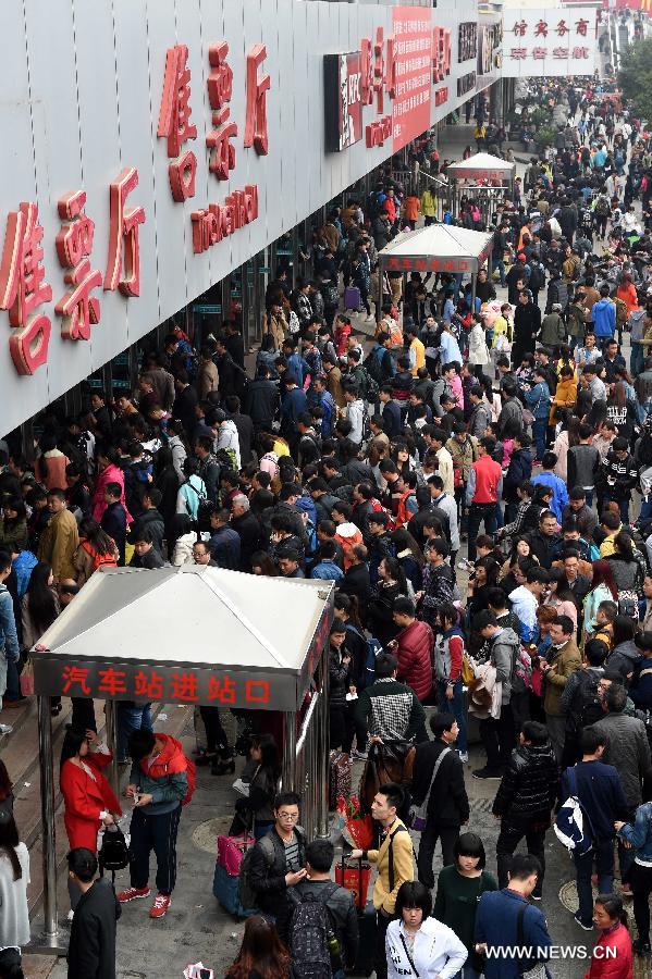 Passengers queue to enter the hall of Zhengzhou Inter-city Bus Station in Zhengzhou, capital city of central China's Henan Province, April 3, 2015. Zhengzhou received a travel rush during China's traditional Qingming Festival, or Tomb-sweeping Day, which falls on April 5 this year. (Xinhua/Li Bo) |