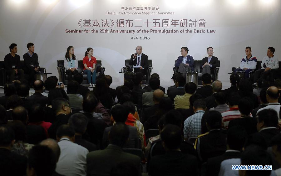 Delegates attend a seminar for the 25th anniversary of the promulgation of the Basic Law in south China's Hong Kong, April 4, 2015. The Basic Law, adopted on April 4, 1990, embodies the vision of "one country, two systems," a pragmatic solution allowing China to incorporate the political and economic complexities of Hong Kong. (Xinhua/Lui Siu Wai) |