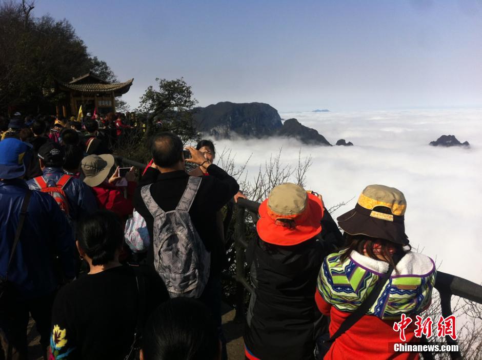 Sea of clouds attracts thousands of tourists in C China (8)