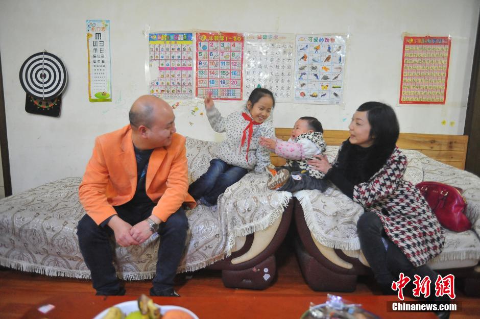 Father: Qu Yulin, 35; mother: Zhou Xiaoli, 35; the first child: Qu Yanru (girl), 8; the second child: Qu Shengxiang (boy), 1. (Chinanews.com/Li Chuanping)