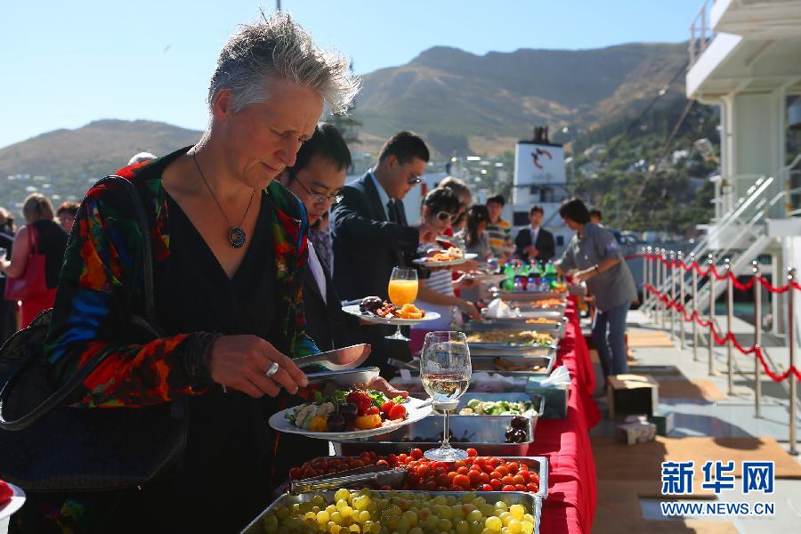 Photo taken on Jan. 27, 2015, an open day of Xuelong, shows people dining on the icebreaker in Christchurch, New Zealand. (Photo/Xinhua)