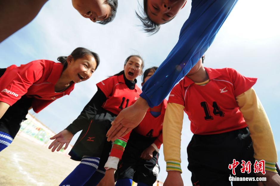 Despite the harsh conditions, the students play football happily in the rough playground with swirling dust. (CNS/Yang Yanmin)