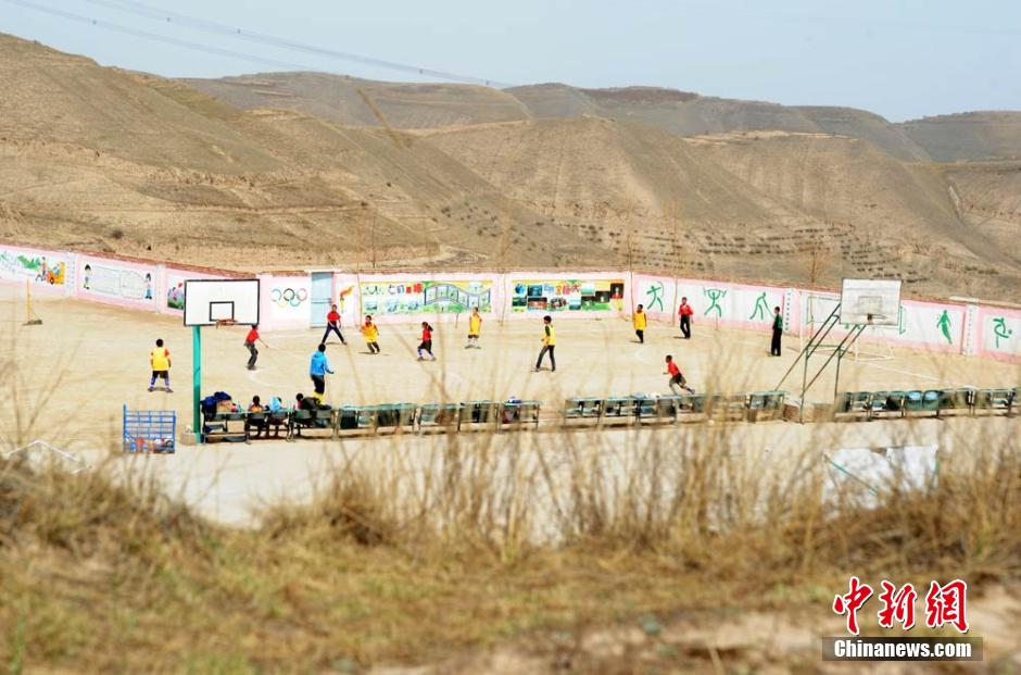 Despite the harsh conditions, the students play football happily in the rough playground with swirling dust. (CNS/Yang Yanmin)