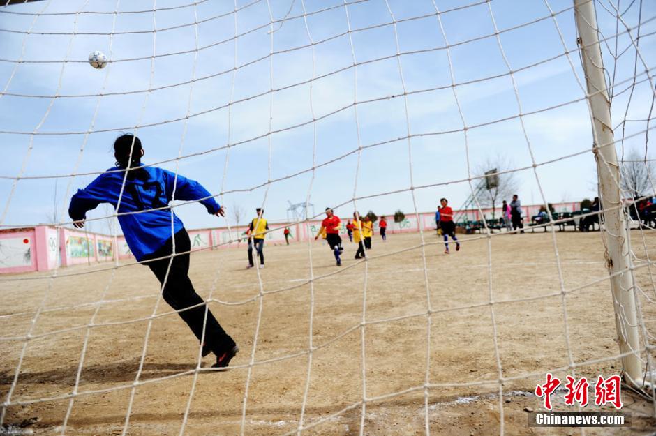 Despite the harsh conditions, the students play football happily in the rough playground with swirling dust. (CNS/Yang Yanmin)