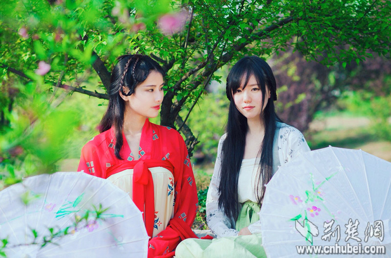 On April 2, 2015, dressing up with traditional Han clothing, four campus belles of Wuhan University of Science and Technology (WUST) went for a spring outing and posed for photos. Their photos have attracted much attention from university students and have become an internet hit. (Photo source: cnhubei.com)