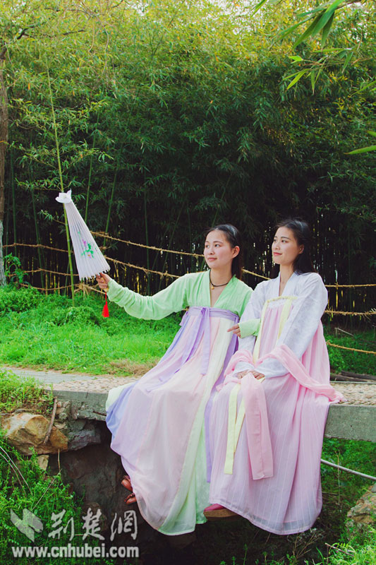 On April 2, 2015, dressing up with traditional Han clothing, four campus belles of Wuhan University of Science and Technology (WUST) went for a spring outing and posed for photos. Their photos have attracted much attention from university students and have become an internet hit. (Photo source: cnhubei.com)