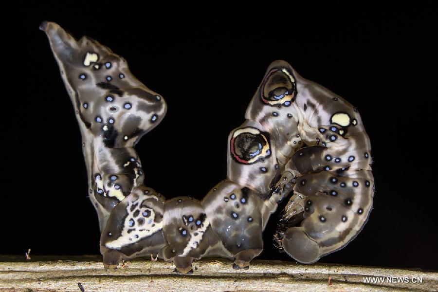 This is a photo of the larva of a moth taken by photographer Cheng Bin. China's first nature image record named "The Beauty of Nature - Nature & Wildlife Photography in China" was released recently, which includes the essence of the 63 programs IBE (Imaging Biodiversity Expedition) has researched on in the six years since it was founded. IBE, founded in 2008, is an institute which aims to record the nature in China by using imaging biodiversity expedition. (Xinhua/Cheng Bin) |
