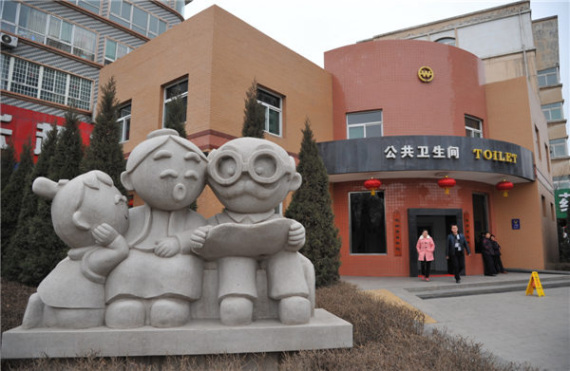 The facade of a "five-star" public toilet in Linfen, a city with rich historical sites in Shanxi province. (Photos provided to China Daily) |