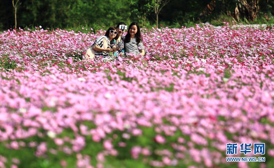 On April 4, 2015, visitors take selfies in the flowering shrubs of Jiangping village, south China's Guangxi Zhuang Autonomous Region. (Xinhua/Zhou Enge)