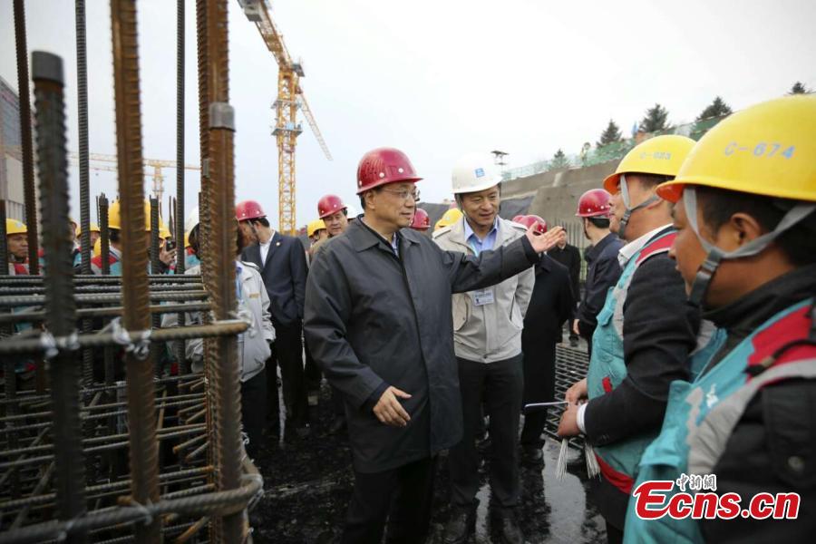 Premier Li Keqiang (L) visits the construction site of a transportation hub in Changchun, the capital of Northeast China’s Jilin province, April 9, 2015. Li emphasized the important role of investment in driving up the economy. (Photo: China News Service/Liu Zhen) |