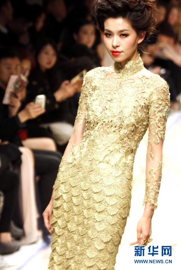 Models present the creations of designer Guo Pei at haute couture fashion week in Shanghai, east China, April 10, 2015. (Photo source: news.cn/ent)